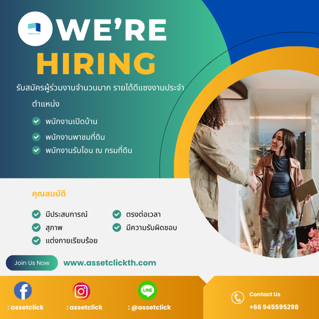 คุณสมบัติผู้สมัคร– มีประสพการณ์ในการเปิดบ้านและพาชมที่ดิน– สุภาพ แต่งกายเรียบร้อย บุคลิกภาพดี ตรงต่อเวลา มีความรับผิดชอบ จดจำข้อมูลได้ดี